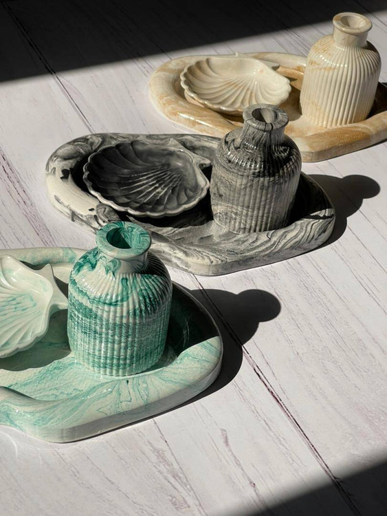 ست سه تکه شامل سینی، گلدان، اکسسوری صدفی