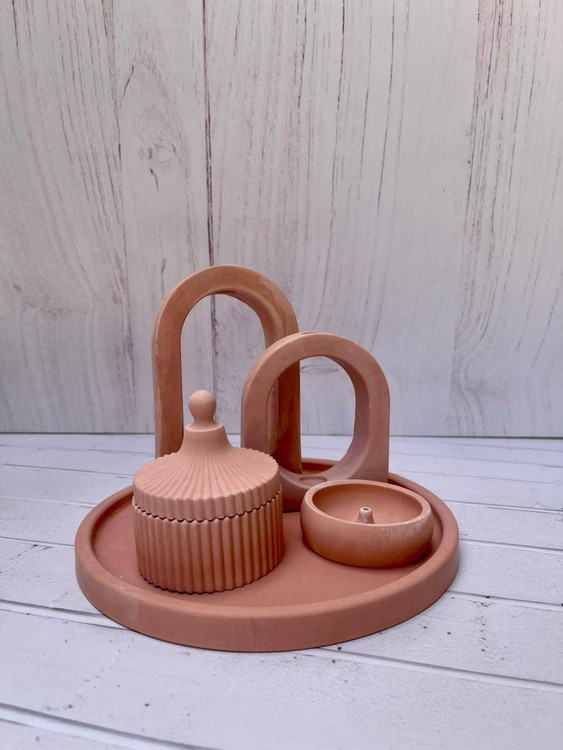 ست پنج تکه شامل سینی، بانکه، دو عدد گلدان، جا عودی
