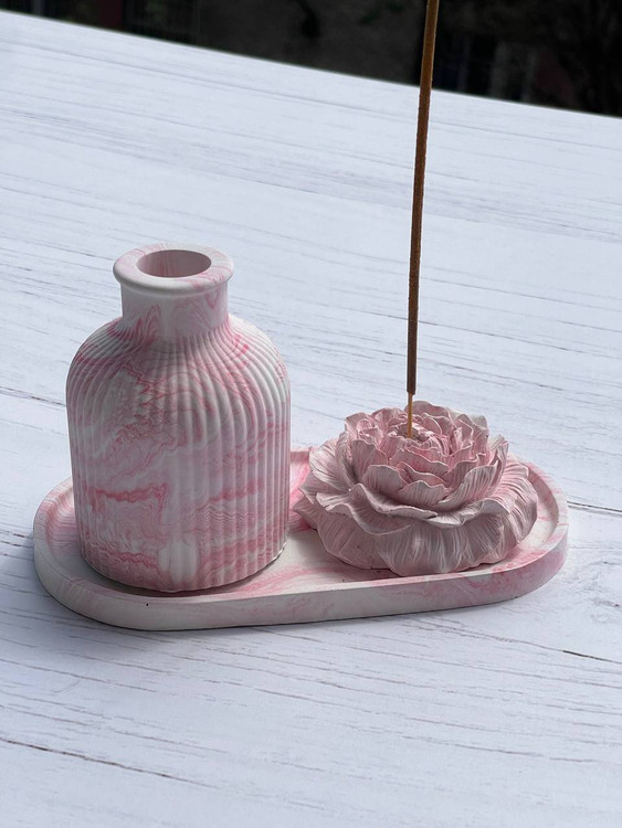 ست سه تکه شامل سینی، گلدان، جاعودی